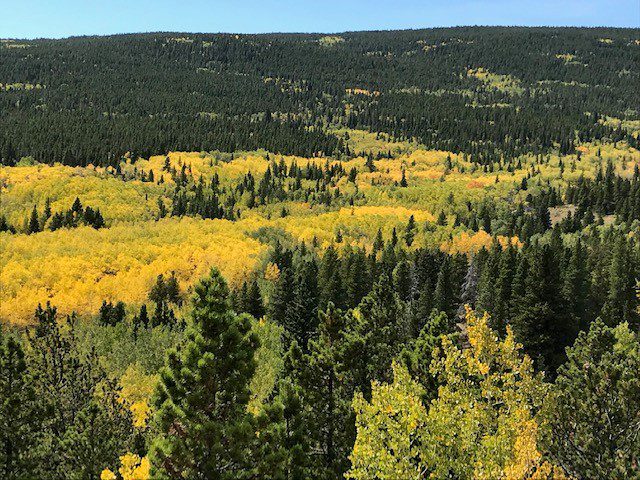 Just 45 minutes from downtown Denver, Golden Gate Canyon State Park is one of the most accessible leaf-peeping destinations along the Front Range. The main park roads wind through 12,000 acres of forest, meadows, and rugged ridgelines, creating a patchwork of gold aspens against deep green pines. In late September, the colors here reach their peak, with entire hillsides shimmering in shades of yellow and orange. The drive itself is easy to navigate, with well-maintained roads and plenty of pull-outs where you can stop to take in the views. Just make sure you bring your wallet to pay the park’s daily fees. It’s a great option if you don’t want to commit to a full-day trip but still want a rewarding autumn experience close to the city.