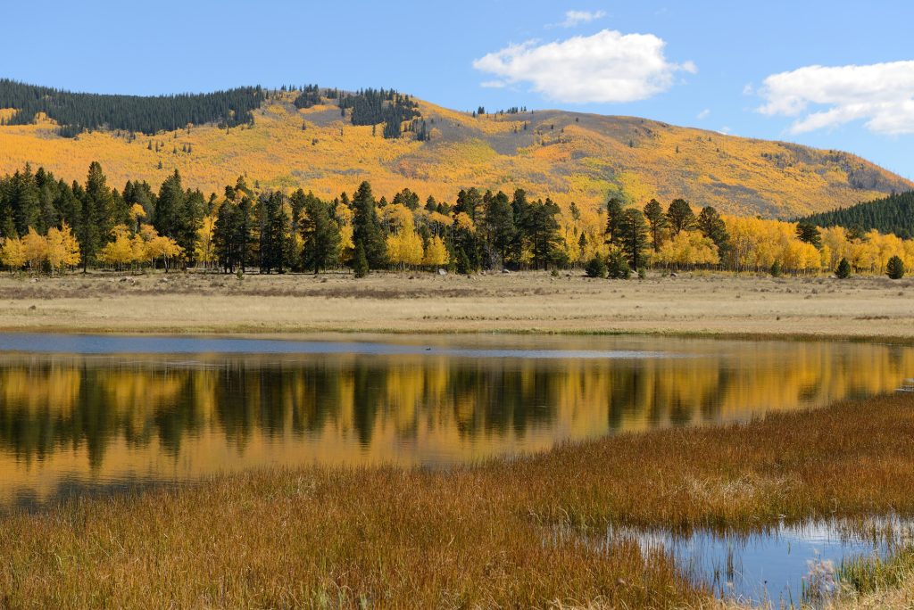From the summit of the pass, the road continues south toward the tiny town of Grant, taking you through subalpine forests and wide-open landscapes dotted with streams and ponds that reflect the autumn colors. Wildlife is common here – it’s not unusual to spot bighorn sheep, elk, or moose along the way. Because of the elevation, the fall colors peak earlier than many other Front Range destinations, often between mid- and late September. This drive is particularly rewarding for those who enjoy variety, with everything from dense aspen stands to sweeping alpine vistas packed into a short route.