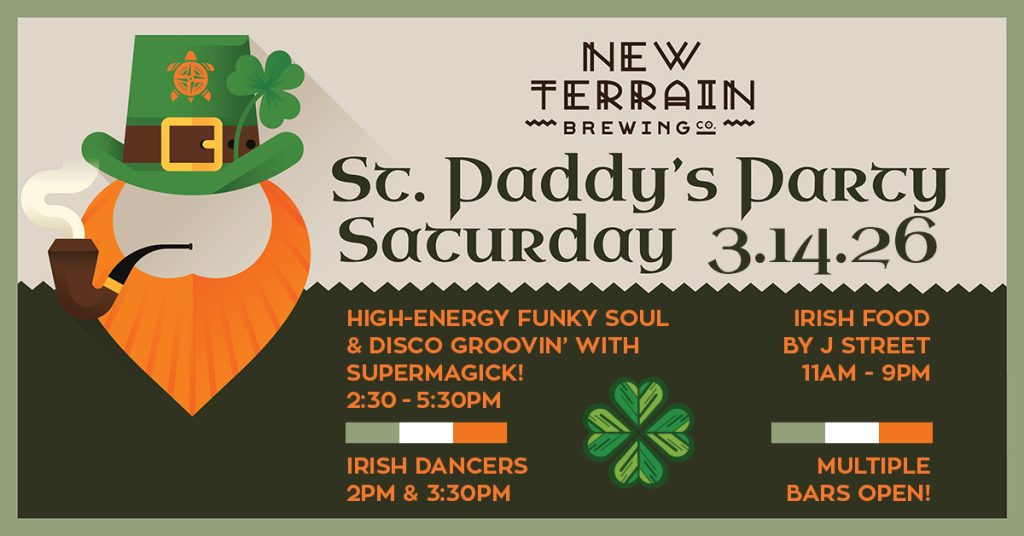 New Terrain Brewing is excited to invite you to the 2026 St. Paddy’s Party! From 11:00 AM to 9:00 PM, come hang out and dive into the holiday festivities. As per usual, entry is free. Invite a few friends or bring some family to enjoy Irish food all day long from J Street, as well as multiple bars that will be open for quick and easy service. At 2:00 PM and 3:30 PM, there will be Irish dancers and from 2:30 PM to 5:30 PM, get ready for High Energy Funky Soul & Disco Groovin’ with SuperMagick! At New Terrain Brewing, the beers reflect the relentless joy that craft brewing brings to employees. If you’re new to their brews, you’ll be delighted by the precision and passion behind each recipe. The beers are constantly evolving, which will keep you coming back for more!