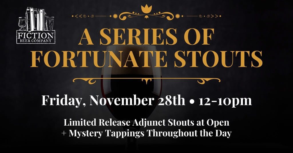Fiction Beer Company is hosting a Series of Fortunate Stouts this Friday from 12:00 PM to 10:00 PM, so make plans to be there or be square! The event will showcase a limited release of stouts at open and mystery tappings throughout the day. In a world of unfortunate events, it’s about time there’s been a fortunately decadent one! Escape the chaos of Black Friday crowds and instead, join Fiction Beer Company for what’s sure to be a unique lineup, with each stout featuring its own curious twist and mischievous flavor.
