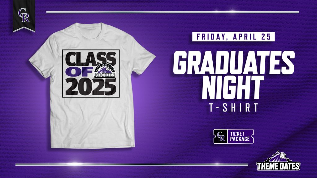 This weekend, the Colorado Rockies are facing off against the Cincinnati Reds in a three-day home stand at Coors Field. Friday is Graduates Night, so snag a Graduates Night Ticket Package to receive a limited-edition Class of 2025 Rockies-themed t-shirt! Shirt distribution info will be emailed to all participants prior to the game. Saturday is the Coors Field 30th Anniversary celebration, with limited-edition Dante Bichette Rockies shirts included with the Coors Field 30th Anniversary Ticket Package. Shirt distribution details will be emailed to ticket holders prior to the event. Sunday caps off a weekend of fun with Dinger Day! Celebrate the most iconic mascot around and snag a Dinger lunch bag, as well as access to an exciting pre-game event with your Dinger Day Ticket Package. Details will be emailed out before the game.