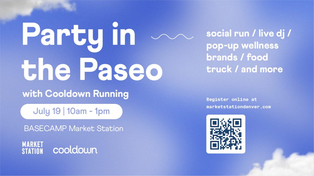 This Saturday from 10:00 AM to 1:00 PM, join Market Station and Cooldown Running for a Party in the Paseo at BASECAMP. Cooldown Running is a national social run club, with chapters across 15 cities! Saturday’s Party in the Paseo is one of two events, with the second one scheduled for September 20th. The deets for this weekend’s event include a scenic 5K through Larimer Square and Cherry Creek Trail, looping you back to the party. Post-run shenanigans include a live DJ set from Something Vinyl Club and local food trucks for some good eats so you can refuel. There will also be drinks offered by Sipp Hospitality and interactive activations, as well as local vendors and exciting pop-ups from running, outdoor, and wellness partners.