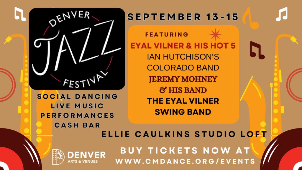 The Denver Jazz Festival will be held at The Studio Loft at Ellie Caulkins Opera House starting this Friday at 8:30 PM and running through the early hour of Monday at midnight. This live music festival is a great way to enjoy social dancing and performances. This three-night event features world-class music and is hosted by CMDance and the Denver Arts Venues. Genres are focused primarily on vintage jazz, as well as blues from the 1920s, 1930s, and 1940s. This year’s bands feature Eyal Vilner & His Hot 5, Jeremy Mohney & His Band, and Ian Hutchinson’s Colorado Band featuring Sweet B. At the venue, you’ll find a spacious dance floor, a full cash bar, and workshops and lectures from internationally renowned instructors during the day.